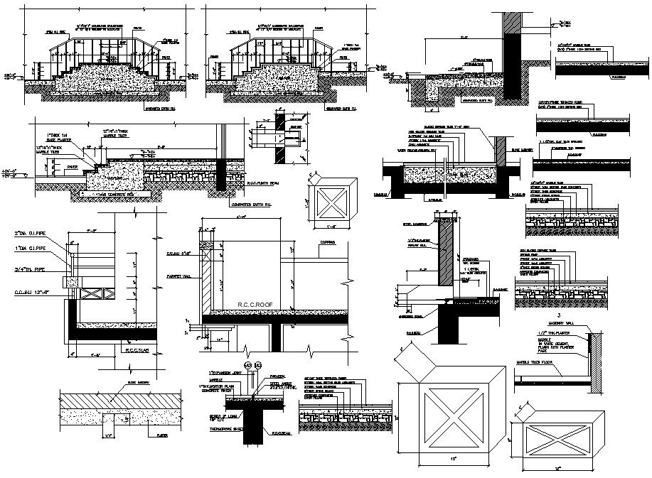 RCC Wall Section Detail DWG File; 2d CAD drawing of RCC wall section plan shows typical structural concrete wall loadings. download DWG file and get more detail about RCC concrete composition detail.
