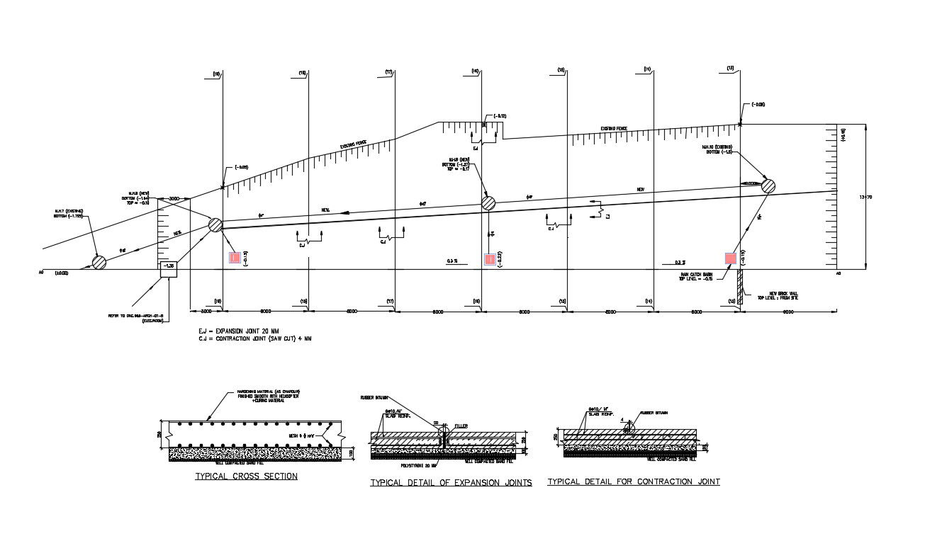 Details drawing of construction joints 2d view which shows the expansion joints, contraction joints in structural blocks.