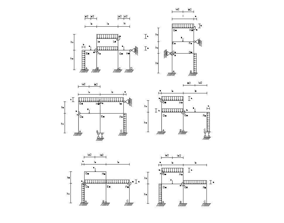 UDL load acting on a statistically determined and indeterminate beam, structural calculation CAD drawing which shows the free end roller and fixed edge beam.