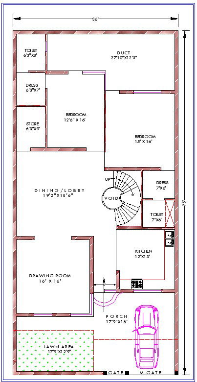 36X75 GROUND FLOOR PLAN FOR HOUSE RESIDENTIAL PLOT VERY GOOD PLANNING FOR RESIDENTIAL. AUTOCAD FILE. 2D CAD PLANING