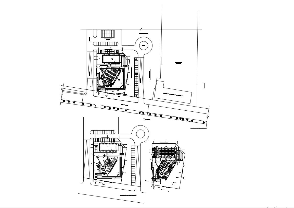 design plan of auditorium building which shows the work plan of building along with auditorium acoustic design with seating arrangement plan details and various other unit details.