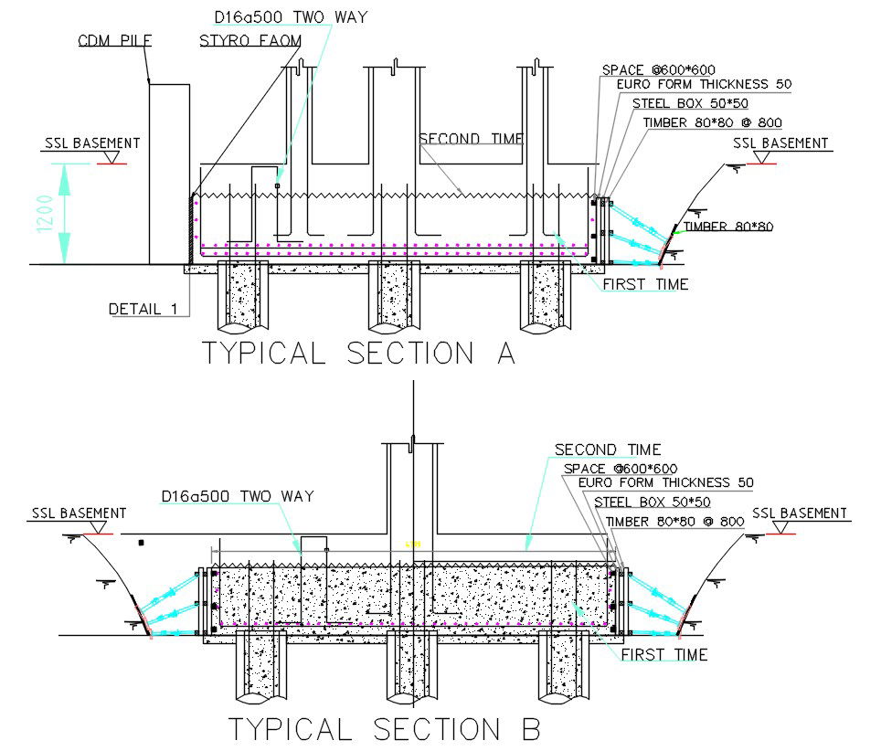 Timber Concrete Section Plan DWG File; 2d cad drawing of timber concrete section plan with structure sectional drawing. download DWG file and get more detail about timber concrete structure detail.