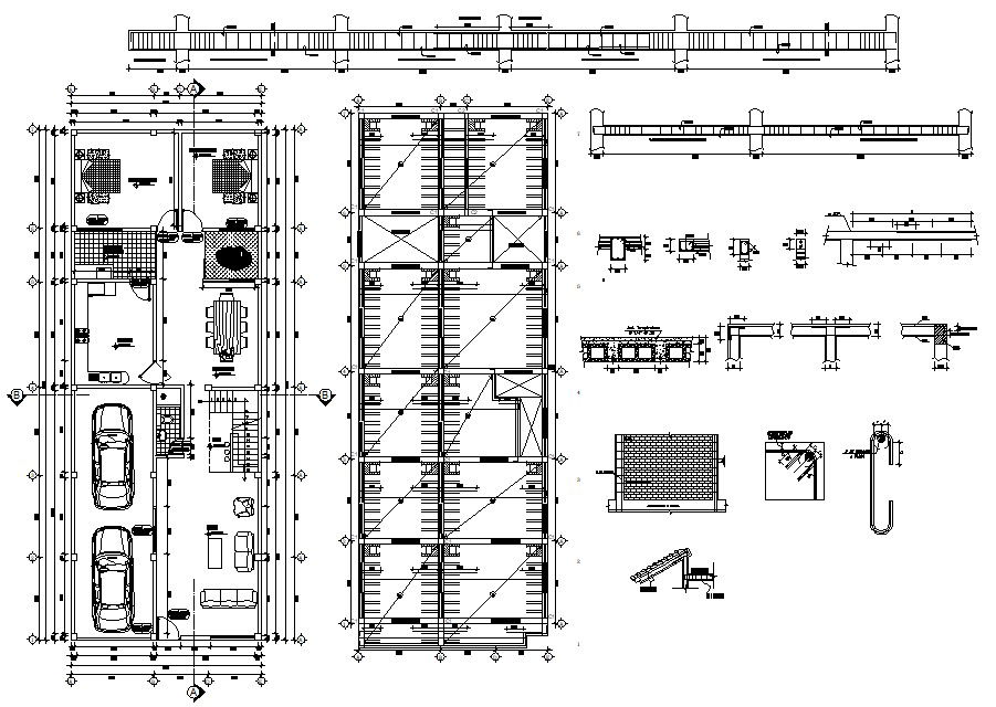 Construction House Plan AutoCAD File; architecture layout plan with furniture detail and construction column section view in AutoCAD format. download DWG file and get more detail about the civil engineer house plan.