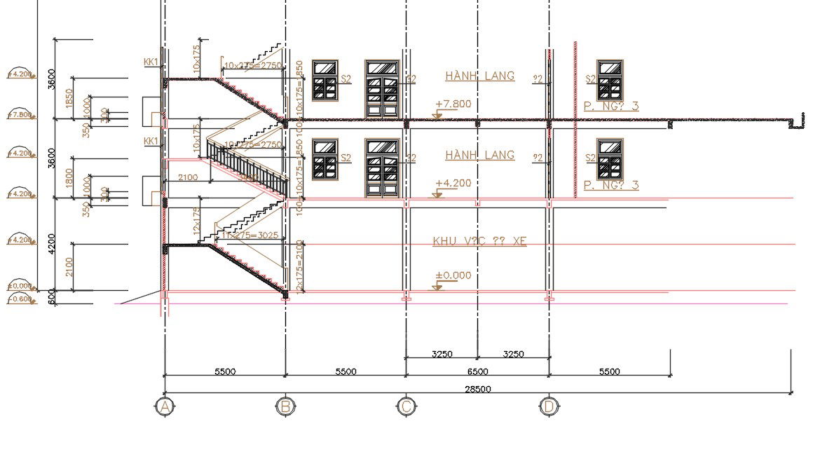 Staircase Building Section Plan DWG File; 2d CAD drawing of construction building staircase section plan with dimension detail. download AutoCAD file and get stair concrete slab detail.