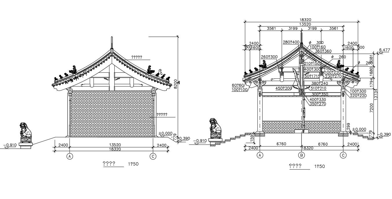 2d design of ancient eaves which shows the elevation design of gazebo along with dimension, column supporters details, roofing shed details, and various other units details.