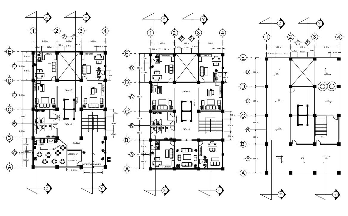 Layout plan of office which shows furniture layout design in building along with dimension, hidden line, rooms and cabins, terrace plan, section line details, and various other units details.