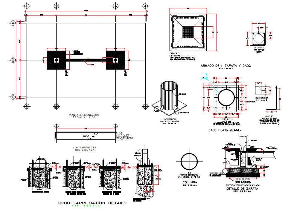 Concrete Column And Combine Footing DWG File; This is a typical concrete column and combined footing plan section detail on longitudinal top reinforcement in AutoCAD file. download concrete column DWG file with section CAD drawing view.