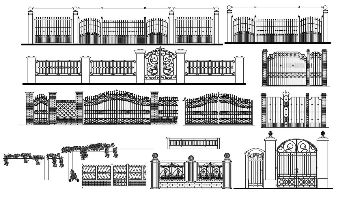 Drawing of perimeter fencing which shows the pattern design of the fence along with shape and design details download CAD file.