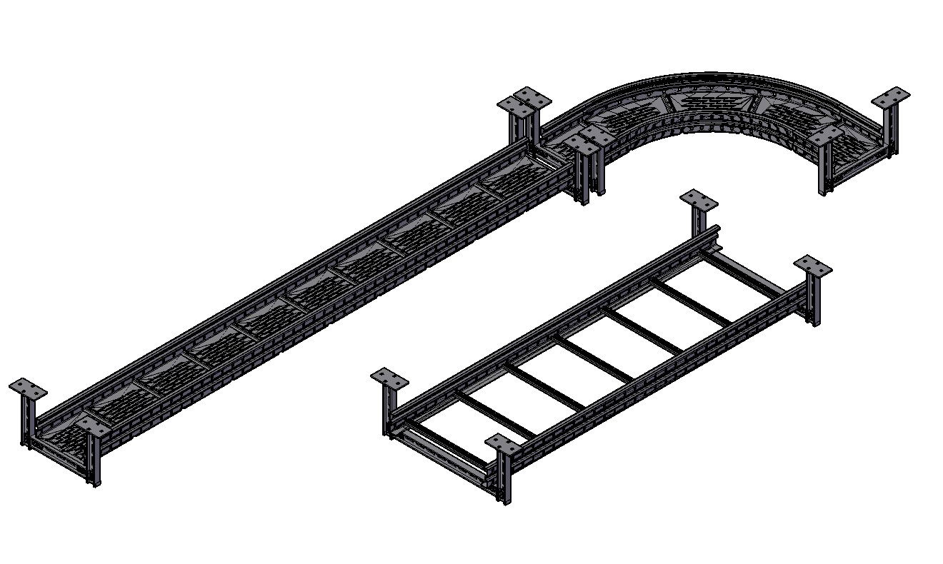 3d design of railway track which shows an isometric view of railing track crossing along with sleepers and shoulders details.