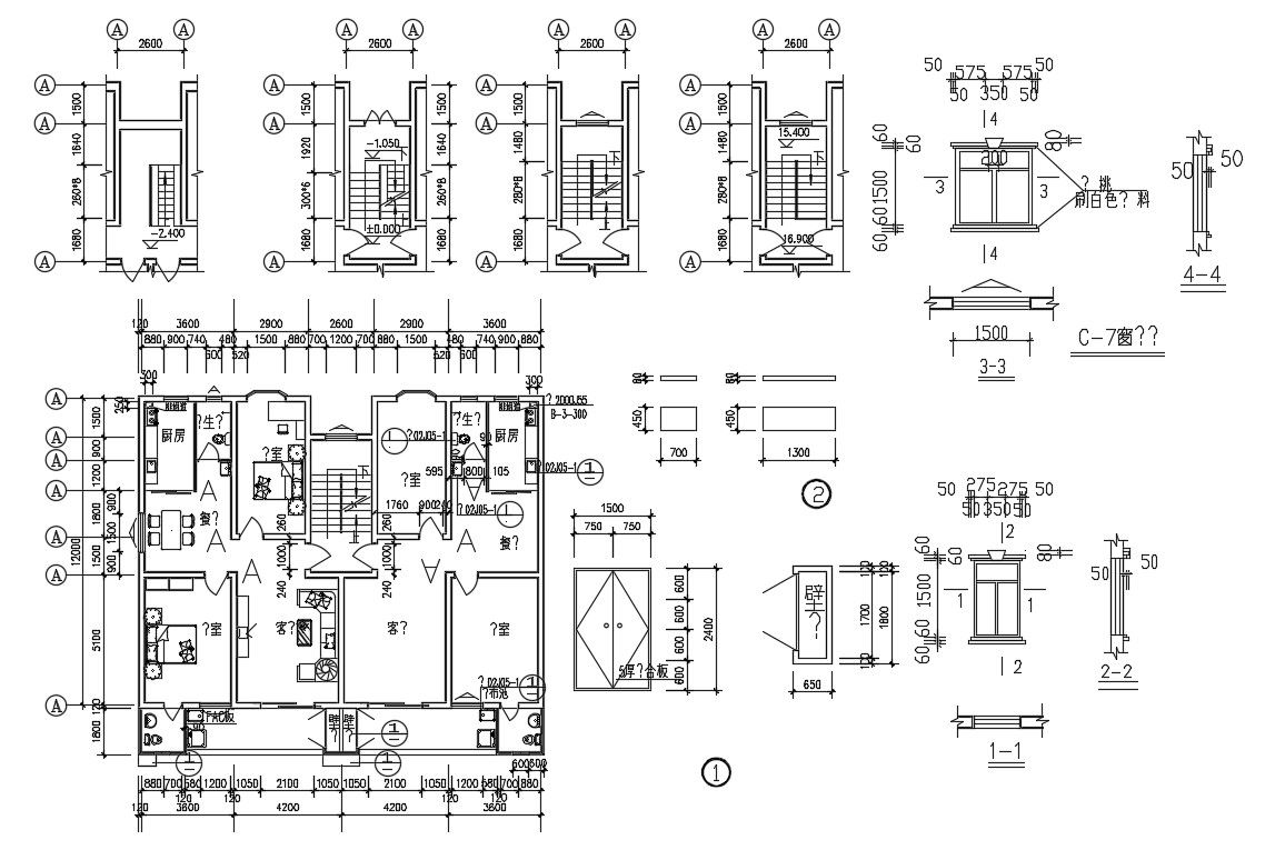 CAD planning of residence house with various other blocks detailing which shows furnished house plan along with stairway plan and door window blocks detailing.