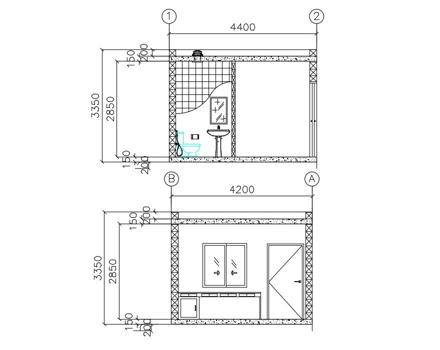 Guard Room Section Plan Free Download; 2d cad drawing of security room section plan includes bathroom and room detail, download free DWG file and get wall and sanitary detail.