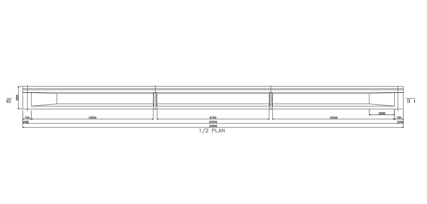 2d elevation design of shelf which shows the dimension details of the shelf along with shelf height details.
