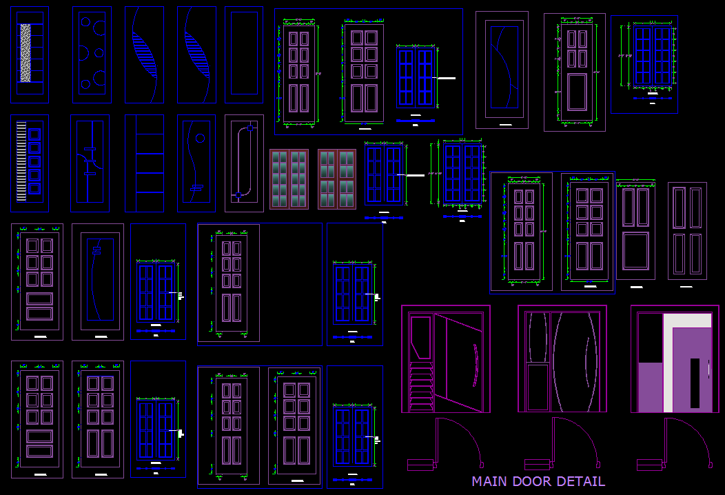 Explore a precise DWG layout of main and single doors, including panel patterns, frame details, and handle placements. Ideal for architects and interior designers planning residential, office, or commercial interiors, enabling accurate space planning and visually appealing door designs with professional detail.
