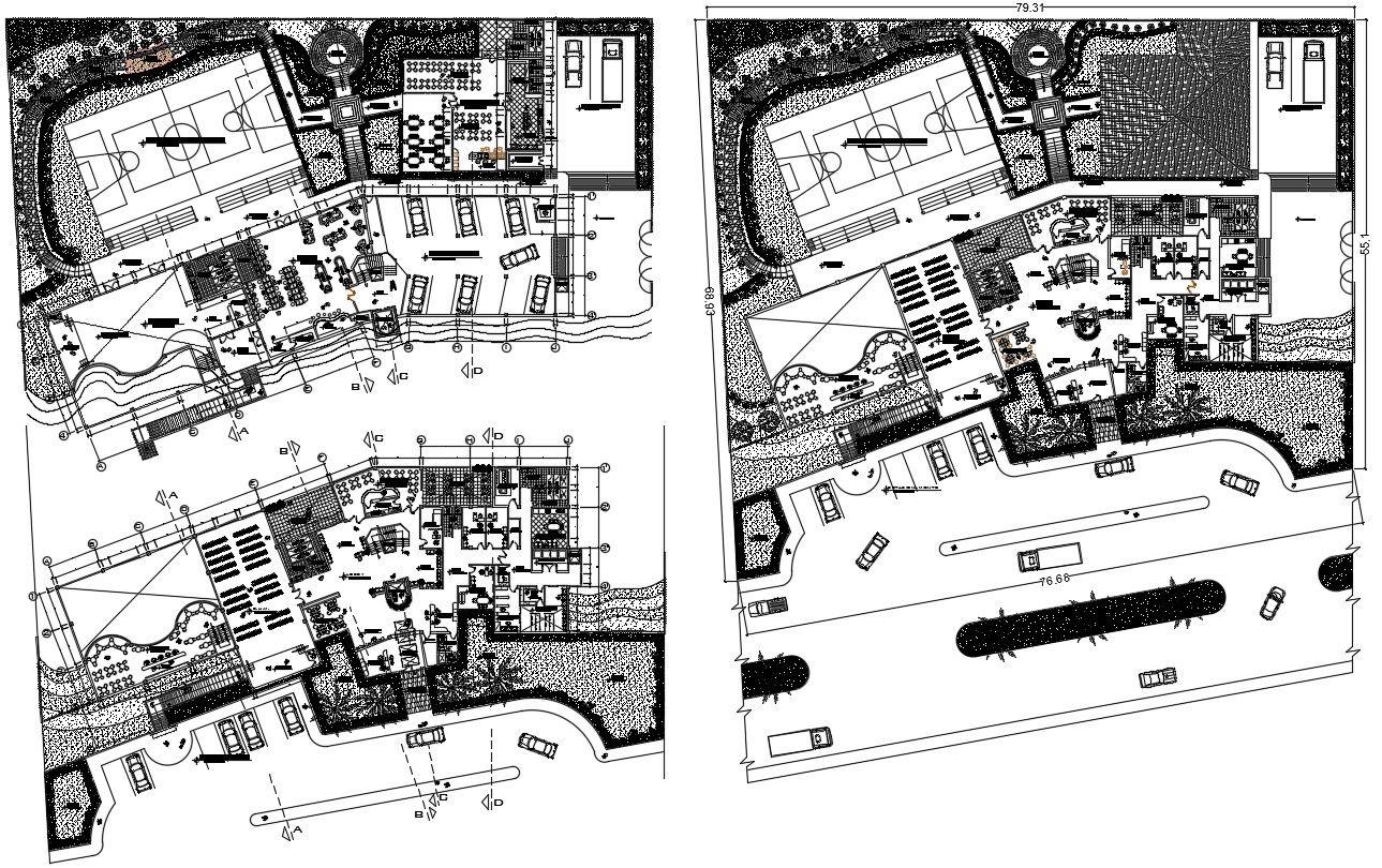 3 Star Hotel Project CAD Drawing; the architecture hotel project AutoCAD drawing includes cafeteria, casino, sports ground, offices, auditorium, car parking, and landscaping design. download architecture CAD drawing of hotel project with description detail.