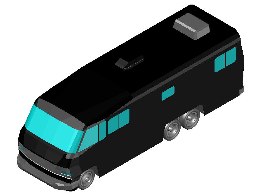 3d design of vanity bus which shows the isometric design of vehicle blocks.