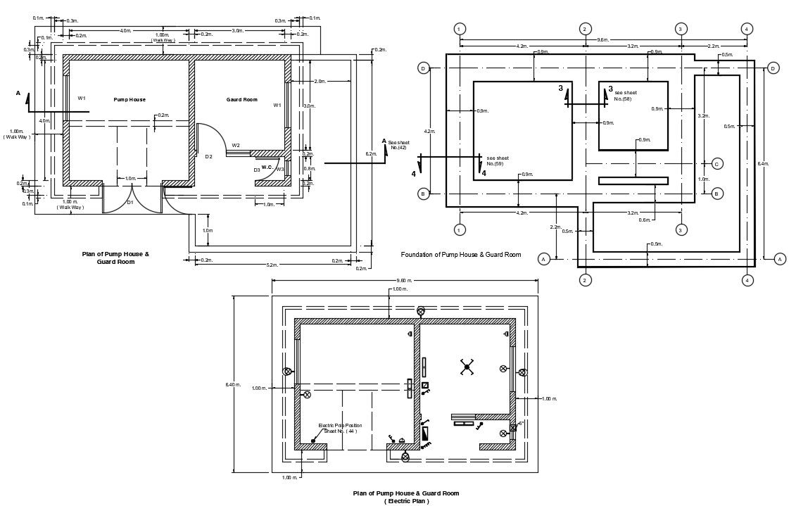 Pump House Floor Plan DWG File; 2d CAD drawing of Pump House and guard room floor plan, electrical layout plan and foundation plan with all dimension detail. download AutoCAD file of pump house and guard room floor plan.