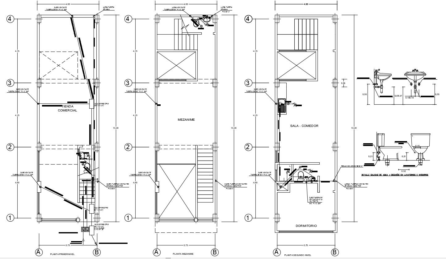 House Sanitary Plumbing Installation DWG File; tow level residence house latout sanitary plumbing installation details with dimension detail. download DWG file of the plumbing pipe installation detail house plan.