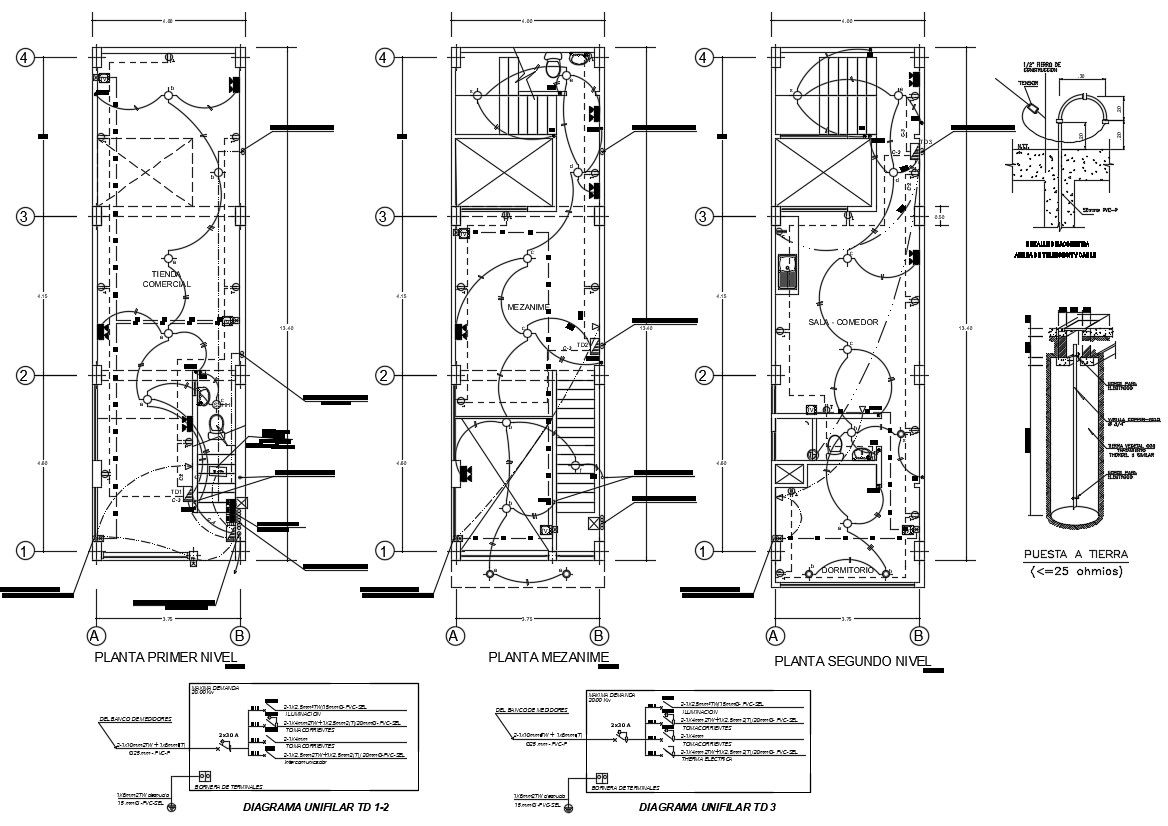 House Electrical Wiring Plan DWG file; house electrical light fitting layout plan shows electrical installation details with earthing wire fuse circuits. download DWG file of house electrical wiring plan.