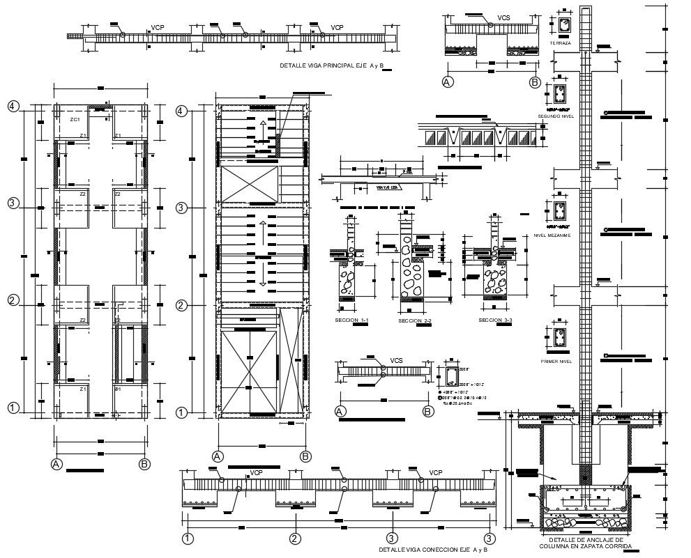 House Construction Plan DWG File; 2d CAD drawing of house construction plan includes foundation plan, beam connection detail, floor level lighted slab, and column detail. download AutoCAD file of the construction house plan with dimension details.