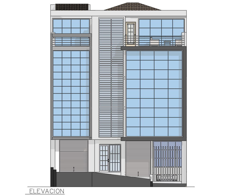 Office Building Elevation Design DWG File; the architecture office building front elecation design in AutoCAD format. download AutoCAD file of office building project with render image.
