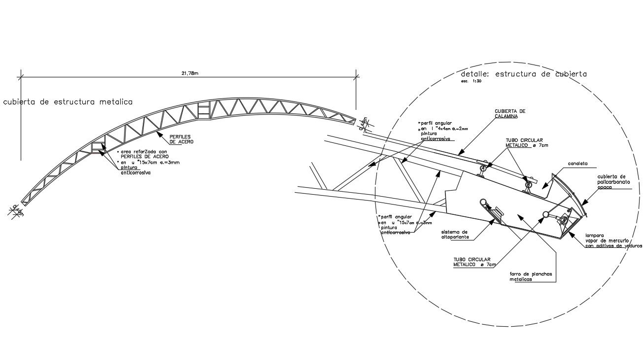 Metal Truss Roof Plan DWG File; 2d CAD drawing of metal truss roof structure detail with description. download free AutoCAD file of truss roof structure section drawing.
