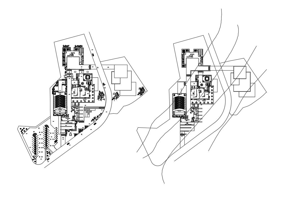 Floor plan design of the building which shows furniture layout details in building along with parking space area details, compound boundary wall details, floor level details,