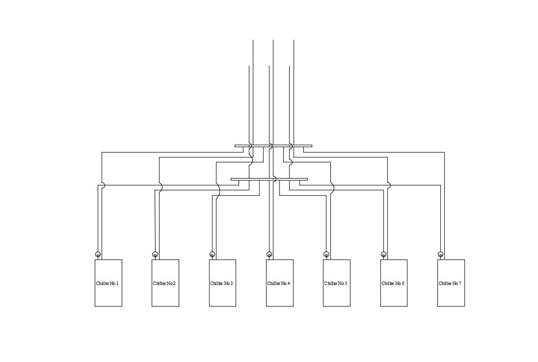 2d layout design of electrical circuit drawing that shows the electrical wiring design details along with electrical unit details of the transmitter, insulators, electrical wire, and other unit details.