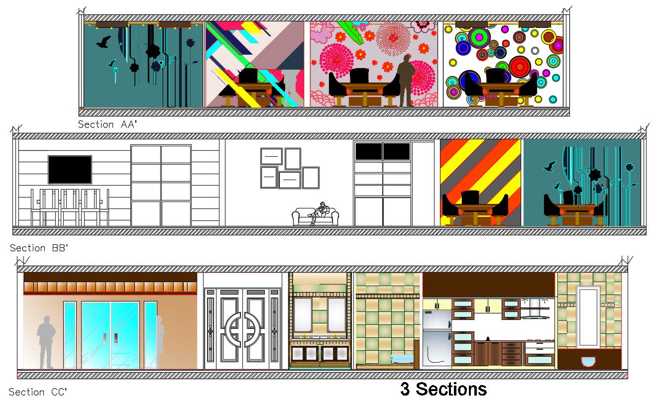 House Interior Design DWG File; the interior design of house elevation design AutoCAD file includes all side elevation design with furniture detailing. download interior design project of house and learn required of interior design CAD drawing.