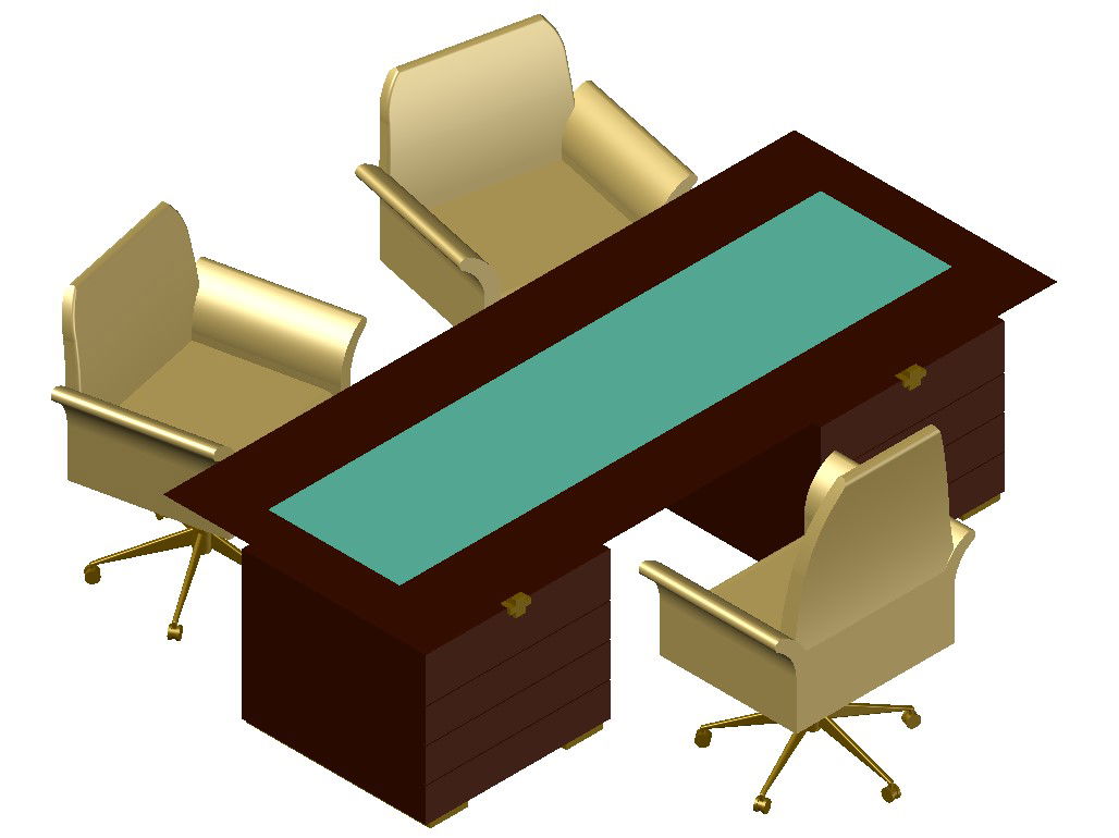 3d model of office table and chair design in AutoCAD format. download 3D model DWG file and use for office furniture CAD presentation.