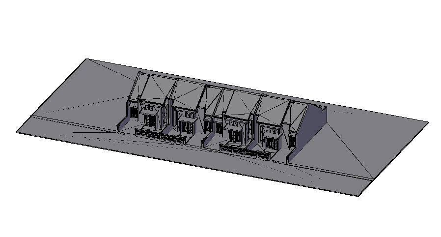 Residence attached bungalow 32d model CAD drawing download that shows isometric view details of the house.