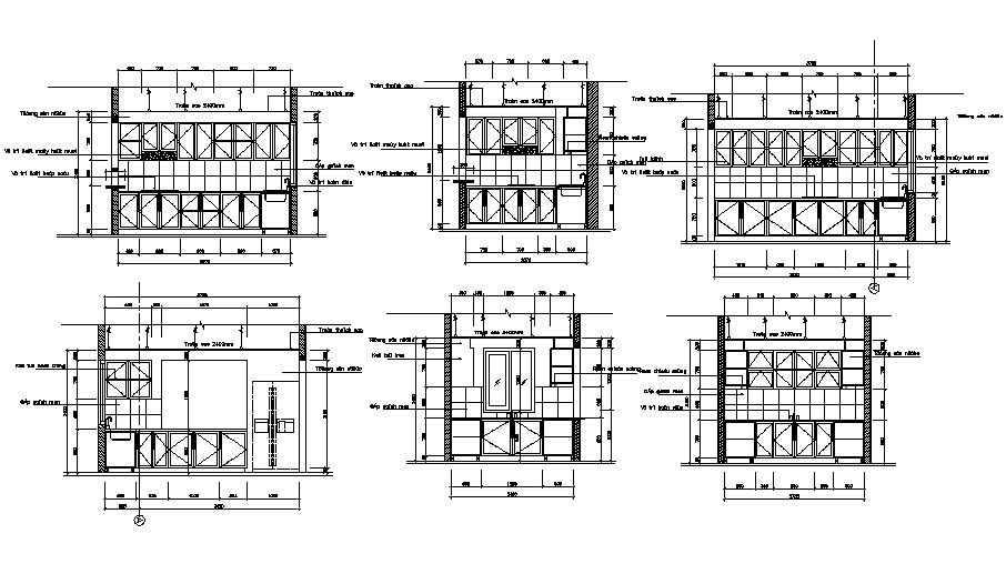 Detail design of kitchen drawing which shows kitchen elevation and section details along with kitchen furniture and automation blocks details and other unit details.