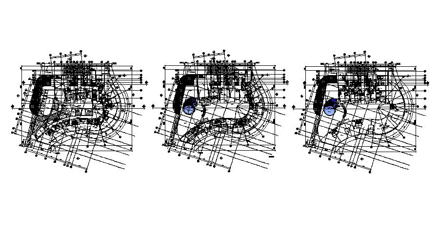 CAD drawing detailing of residence house which shows the floor plan of house along with room dimension details, house rooms details, dimension section line details, floor level details, and other details.