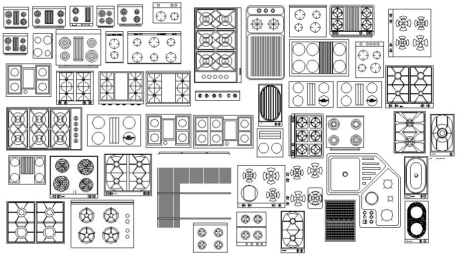 Kitchen stove and kitchen sink top elevation CAD drawing download for free.