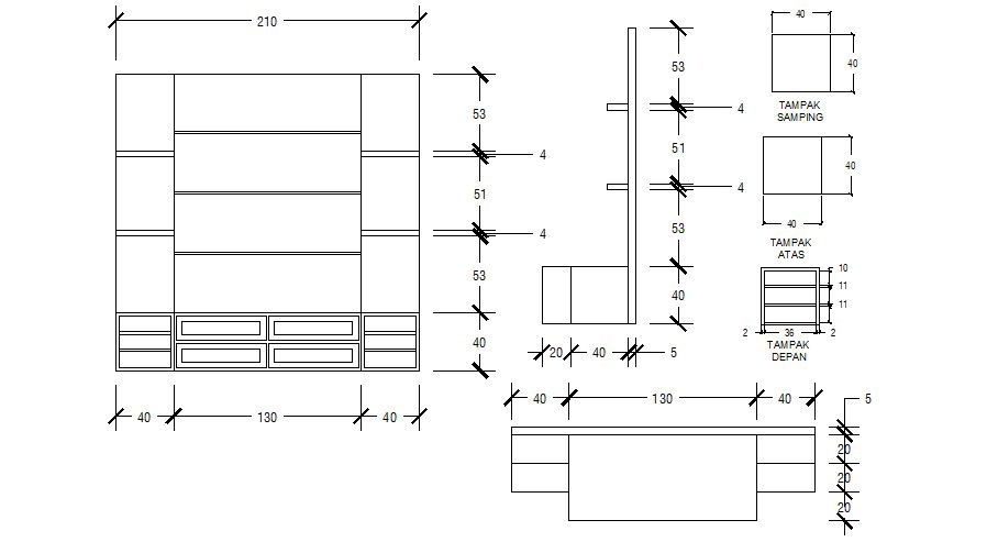 2d Elevation drawing details of showcase furniture blocks that shows shelves and racks details in showcase furniture along with furniture units different sides of elevation drawing.