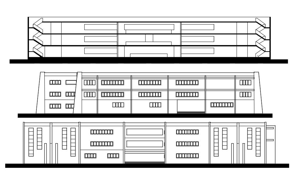 Commercial Complex Elevation CAD File Free Download; Modern two elevation of a commercial building with basic stair section.
