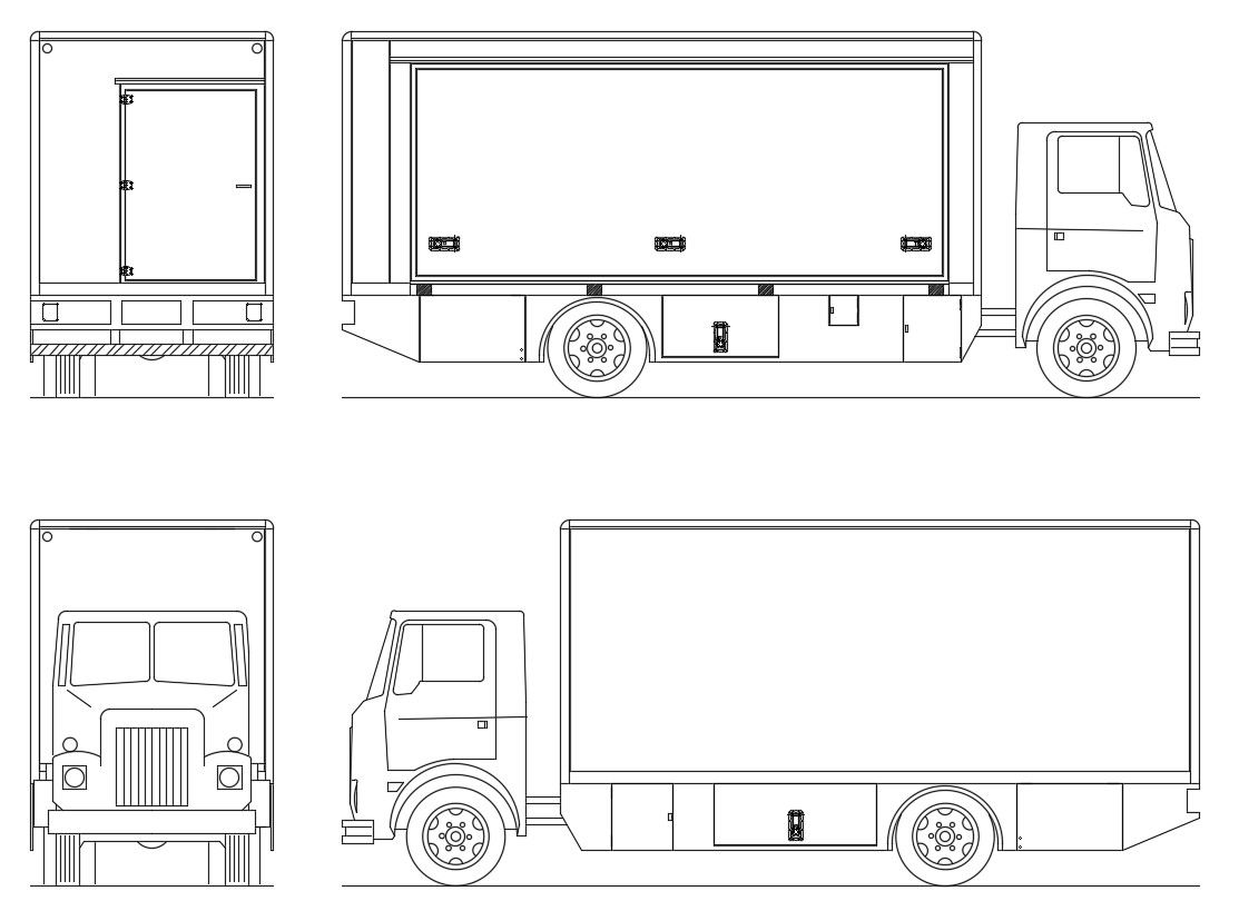 Truck CAD Block Free Download ; Loading -unloading sketch of Track front, back, rear and left side elevation,