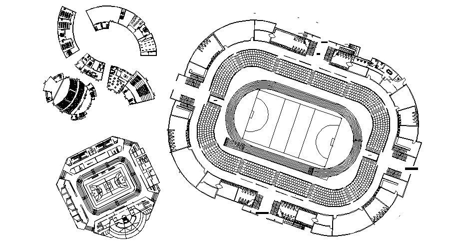 College university building design CAD drawing which shows building floor plan details along with furniture blocks details, sports ground details, building classroom detail, sanitary toilet washroom details, and other building facilities details.