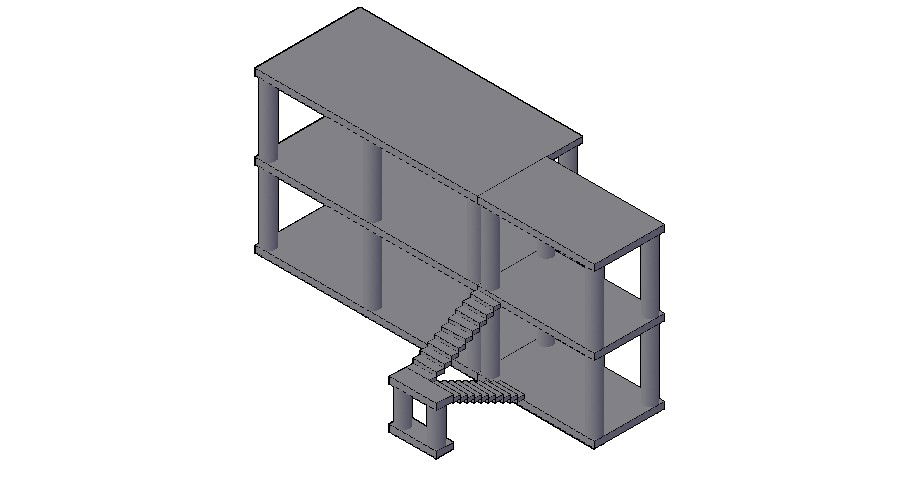 3d model design of open building CAD drawing which shows isometric view design of building with staircase detailing.