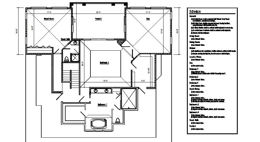 2 Bedroom Modern House Plan CAD File; that includes a detailed view of house doors and windows, drawing room and living room with family hall details kitchen and dining area, indoor staircases and laundry area and balcony and bedroom details provided.