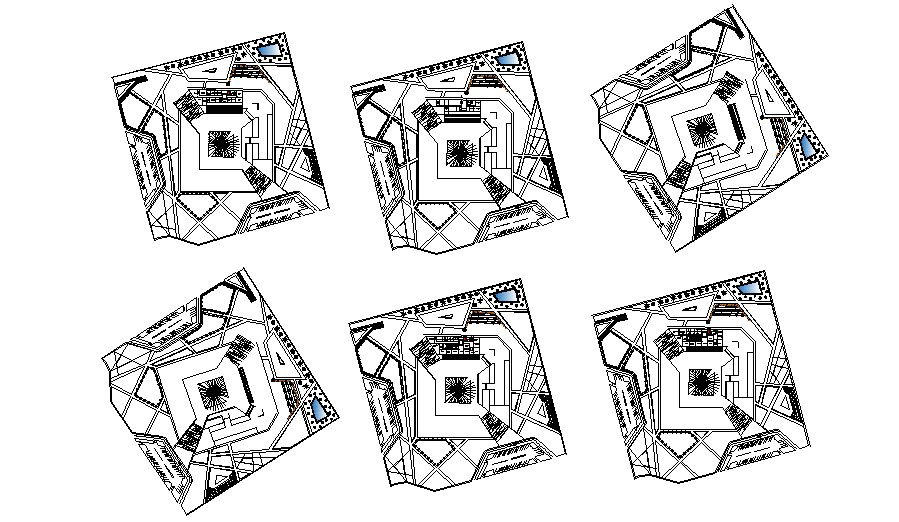 Multi-story building design plan download CAD file which shows the work plan designing of building along with landscaping details, boundary wall details, parking space details, and other unit details.