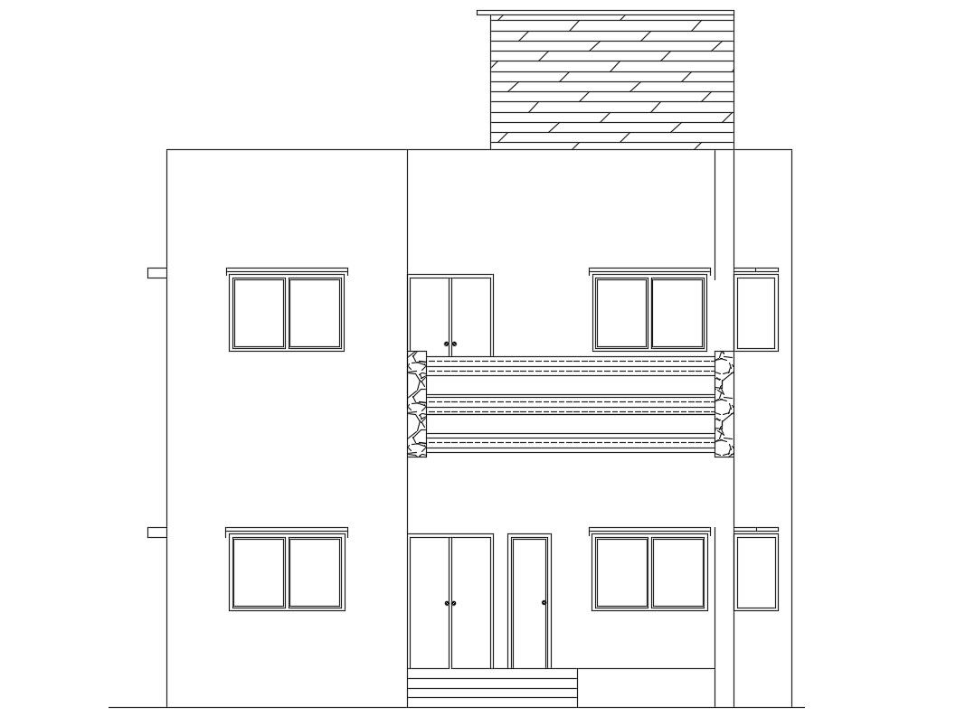 House Front Elevation CAD File Free Download ; front elevation with main entry door windows balcony.