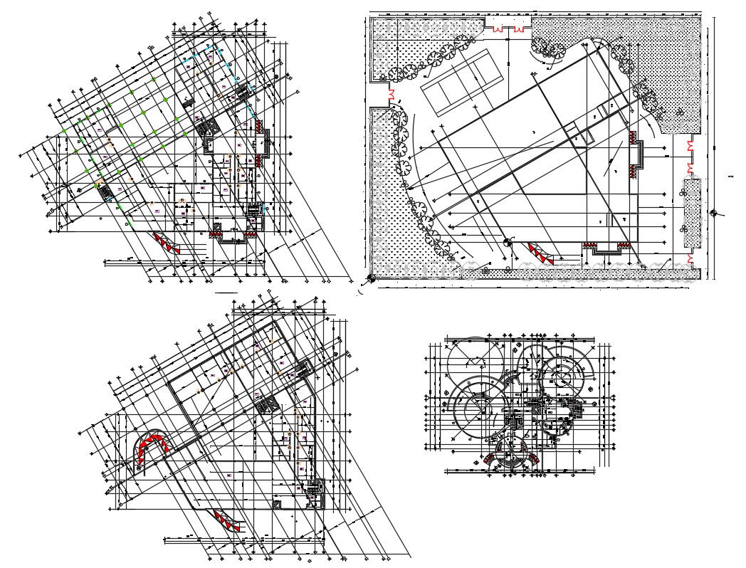 Bungalow Construction DWG File ; bungalow center line and working detail with some landscape download.