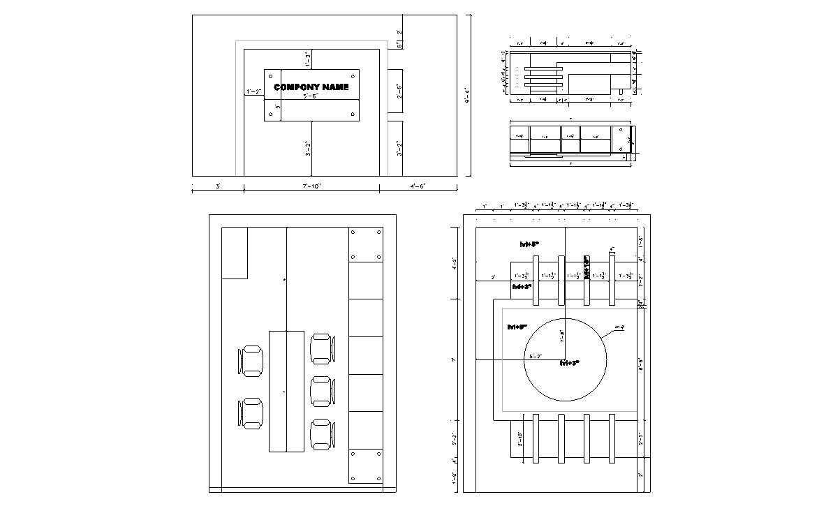 Download the office room design plan that shows furniture details in the office room along with furniture elevation details.
