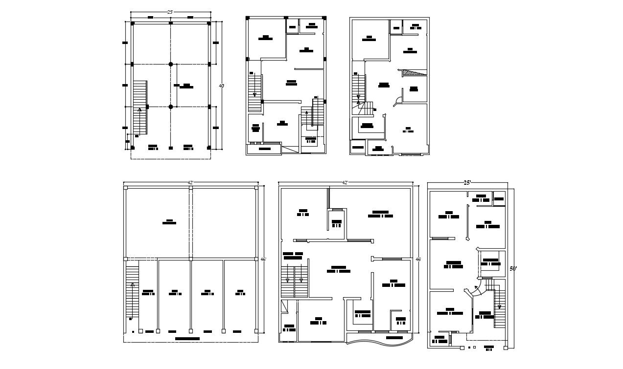 CAD drawing details of residence house which shows room details in house along with room dimension details, staircase details, floor level details, and house other details.