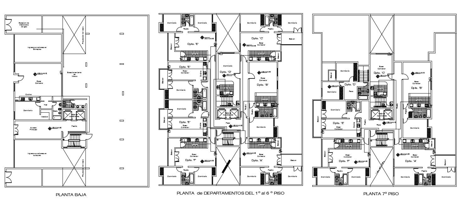 Residence Apartments Floor Plan DWG; 2d CAD drawing of residence apartment floor plan with description detail and 1 to 3 BHK house plan. download DWG file of the apartment floor plan.