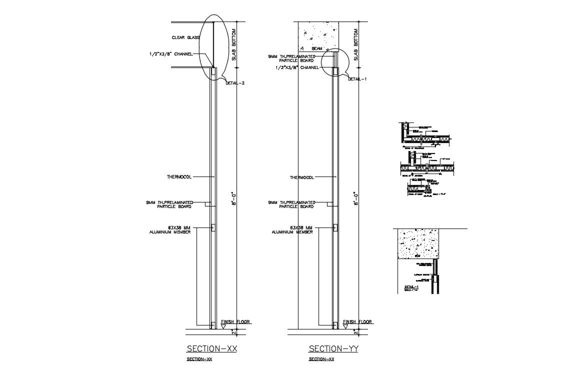 Download sectional design of structural blocks which shows pre-laminated particle board, aluminum member, channel, glass, and other units detailing.