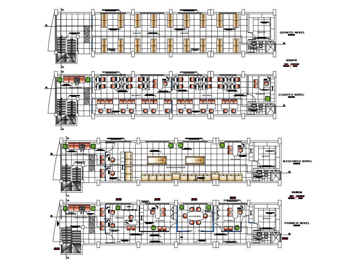 Office Floor CAD Drawing; the architecture office floor plan with furniture detail in different floor plans. download AutoCAD file of the office floor plan with staircase detail.