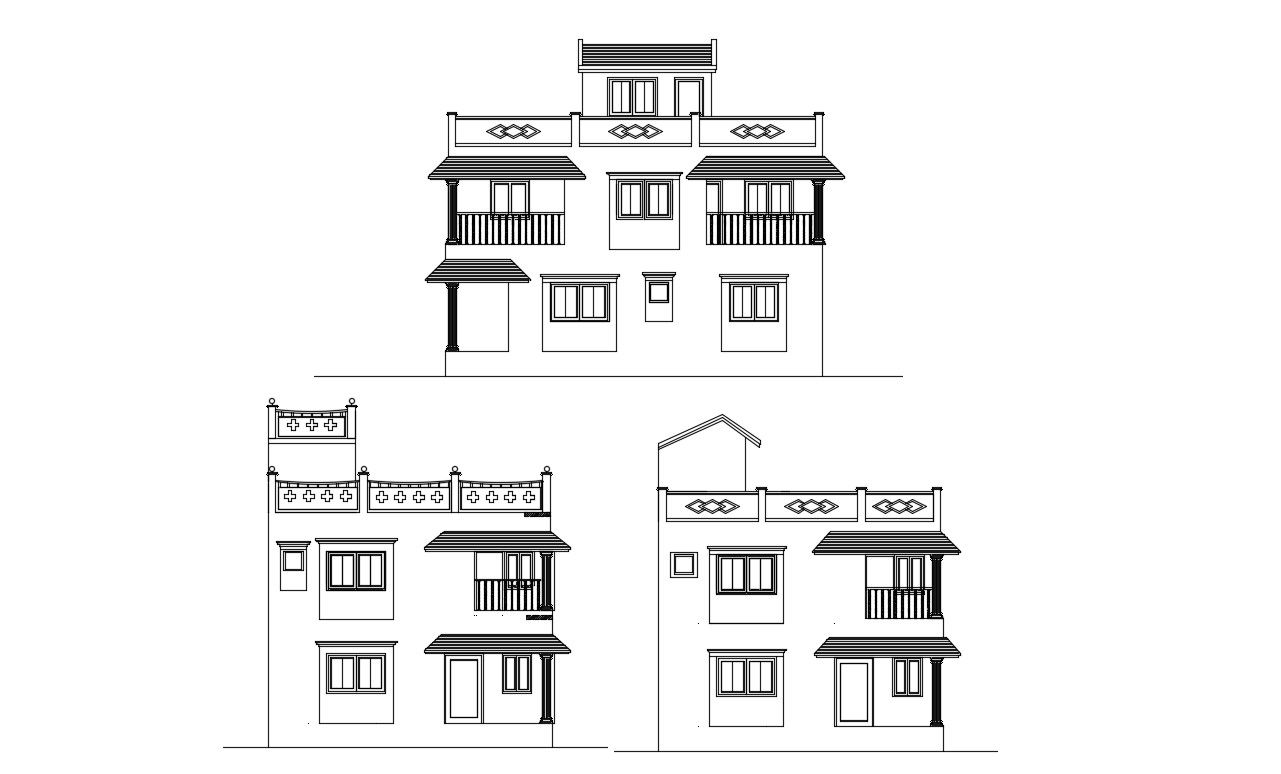 Download Bungalow elevation design which shows house different sides of elevation details like front elevation, sides elevation.