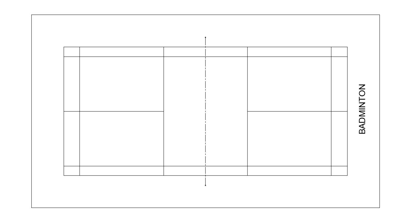 2d plan design of badminton ground which shows ground markings and signs details along with ground design details.