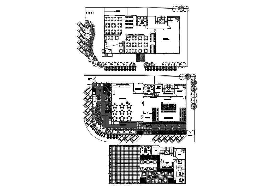 Floor plan design of restaurant building that shows building furniture layout details along with dining area, kitchen area, and restaurant other units details download a CAD file.
